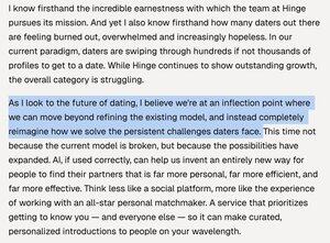 Hinge 的創始人兼 CEO 剛剛辭職,準備創建一個新的 AI 約會應用程式。 他看到了重新構想整個類別的機會,並擺脫那種讓許多約會者感到不滿的滑動式範式。 2026 年將會是 AI 媒合者的一個重要年份!