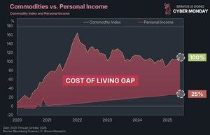 商品價格自2020年以來上漲了100% 但個人收入僅上漲了25% 這種生活成本差距是不可持續的…… 一個主題 🧵