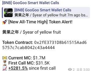 黃果之年 / $year of yellow fruit 0x2fE3731D8b61515Aad65757c7cab8042c43a4444 💵 Current MC: $1.7M ⏳ First Call MC: $31.5K 📈 +5281.5% since first call
