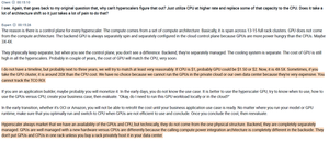 - 根據專家的說法,超大規模雲服務商正在大規模投資數據中心 GPU 基礎設施,主要是為了啟用 AI 模型和向客戶提供向量數據庫。然而,專家觀察到短期內存在顯著的財務不平衡:超大規模雲服務商的投資成本目前高於從客戶計費中產生的收入,這表明他們尚未完全實現貨幣化。他們預計,超大規模雲服務商需要 2 到 3 年的時間才能收回投資並達到盈利的價格點。這主要是因為行業仍處於 GPU 生命週期的中期,仍在確定長期運營成本。