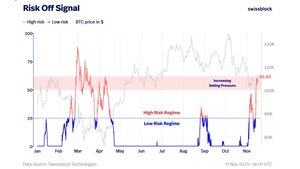 風險回避信號已回升至上一次在2月底至4月初修正期間出現的賣壓水平。 那個階段的特徵是持續的壓力,導致比特幣的底部延遲到4月初,直到月中才回到低風險狀態。