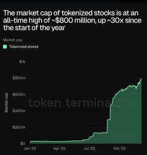 🚨在 #Solana 上的代幣化股票剛剛達到新的 ATH $800M,正式使 Solana 成為第二大鏈上股票平台。