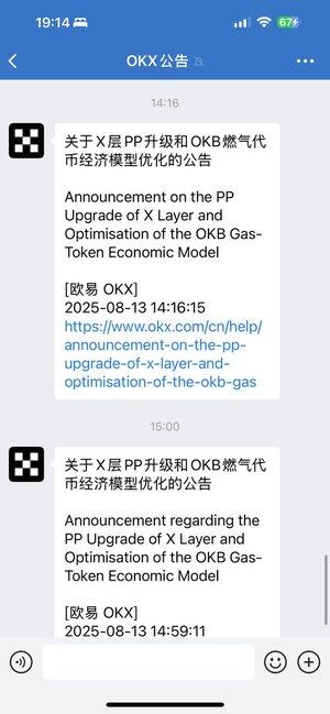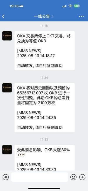 追蹤了一下,最開始的公告是ok官方在14:16推送的,但是當時標題比較繞口。然後被MMS NEWS在14:18第一次推送,14:24分第二次推送並且標記了銷毀信息。
