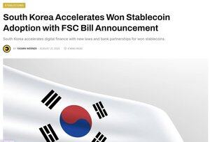 韓國即將在十月宣布一項新的穩定幣法案,機構和監管機構對這一領域的興趣正在升溫,這是全球第13大市場和加密貨幣的全球熱土。