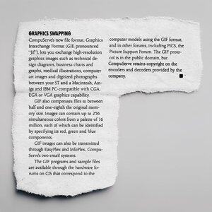 1987年:"CompuServe的GIF(圖形交換格式)項目——一種專有的圖片格式及其轉換工具,適用於從IBM和Macintosh II到Atari ST、Amiga和Apple IIgs的計算機——部分完成。"