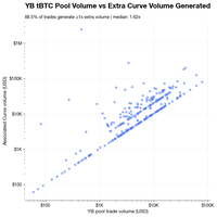 結果發現,幾乎每一筆在收益基礎池上的交易(DAO 無管理費)都會在其他 Curve 池上產生相等的交易量(費用歸 DAO 所有)