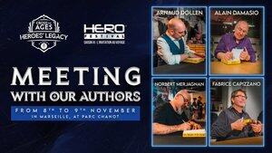 藝術家 📚 HeroFestival 在11月8日和9日,#HeroFestival 馬賽(Parc Chanot),與官方作者和藝術家 🎨 會面,探索他們的靈感,並帶回一本簽名書籍! ▪️現場嘉賓包括: - Arnaud Dollen,系列的首席作者和敘事協調員。 - Norbert Merjagnan,Imaginary Grand Prix 獲獎者和 Artellium 的世界建構架構師。 - Alain Damasio,系列的導師和《La Horde du Contrevent》的前瞻性作者。 - Fabrice Capizzano,系列的情感參考,著作包括《La Fugue d’Aurèle》和《Les Encres évaporées》。 在攤位活動中,還將有獨家書籍和好禮可供獲得。