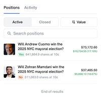 所以這位投資者昨天剛加入 Polymarket,現在是庫莫獲勝的第一大持有者。他/她唯一的其他持倉是對佐赫蘭失敗的賭注,這可能是為了讓他獲得更多流動性。 這個帳戶知道我們不知道的事情嗎?