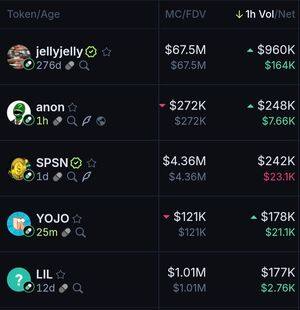 過去1小時基於交易量的最佳Pumpfun幣: $Jellyjelly $Anon $Spsn $Yojo $Lil 🤖: