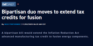 這是美國融合發展和清潔製造方面的精彩兩黨進展,由我們自己的@senatorcantwell和猶他州的@Senjohncurtis領導。 我們需要隨時準備好在機會來臨的時候擴大美國的融合電力!