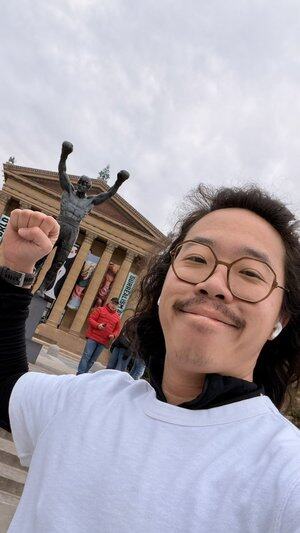 今天在費城,當然我得做早上的洛基·巴爾博亞跑步.. 響起小號.. 🎺🎺🎺