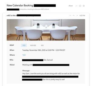 透過我的 $500 x402 端點進行的第一次日曆預訂 在 x402scan 上找到我