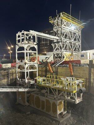 垂直卡式和帶式彎曲機,用於隧道岩石移除,已在納什維爾設置完成! 輸送帶穿過結構,通過隧道到達TBM,然後再返回。對於一條9英里的隧道,18英里的帶子正在運行。 它每分鐘可以移除超過33,000磅的岩石!