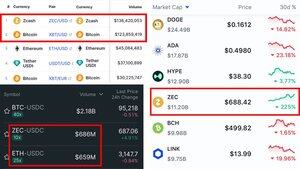 最新消息:$ZEC/ $USD 在 24 小時內的現貨交易量超越了 $XBT/ $USD - $ZEC/ $USDC 在 24 小時內的永續合約交易量超越了 $ETH/ $USDC $ZEC 在過去 30 天內上漲超過 220% 來源:;;HYPERLIQUID