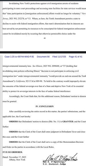 最新消息:一名聯邦法官已駁回司法部要求紐約州在州法院協助移民逮捕的訴訟。