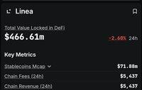 => Linea 每週有 79K 個地址,914K 次交易,目前的 TVL 為 $462M。