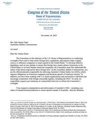 "你對澳大利亞的OSA [在線安全法] 的廣泛解釋和執行——包括你聲稱的對澳大利亞以外言論進行審查的域外管轄權——直接威脅到美國的言論。
