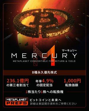 本日、年率4.9%の固定配当と1,000円の転換価額を有する B種永久優先株式「MERCURY(マーキュリー)」 の発行を開示しました。