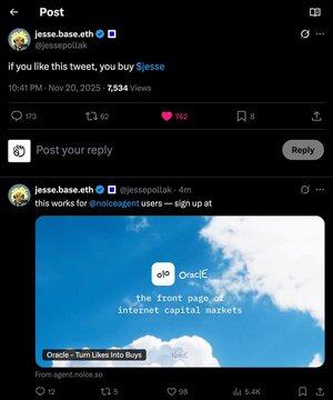 對於所有的 base、noice 和 oracle 來說,這是一個歷史性的一天。擁有資金錢包的 oracle 現有用戶,僅用一個讚就購買了 $jesse。 註冊: