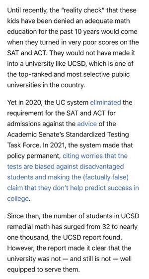 這就是原罪: 放棄 SAT/ACT 入學要求的大學對自己和學生造成了損害。 現在我們有大學學生連基本的數學都不會做。 UCSD 的領導者應該受到公開譴責,直到他們撤回這項政策。