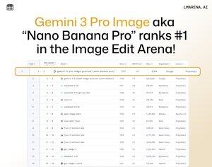 🚨突發消息:@GoogleDeepMind 的 gemini-3-pro-image "Nano Banana Pro" 現在在文本到圖像和圖像編輯領域中排名第一。