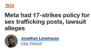 在現實世界中,性販子不會在被追究責任之前有17次機會。 Meta對兒童和成人的剝削是故意的。是時候通過《兒童在線安全法》,為下一代站出來了。這就是當國會未能採取行動時所發生的事情。