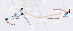 我在旅行日與我的 ATHENA 助手一起做的另一件愚蠢但極具價值的事情,就是讓他們發送一份機場地圖給我,上面標示著各個貴賓室、我的登機門以及它們之間的旅行時間……