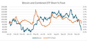 $IBIT 的空頭利息已經大幅下降。起初的空頭利息並不高,僅為 2% 的股份,但現在幾乎回到了四月大漲前的水平。根據 S3 Partners 的說法,交易者傾向於在強勢時做空,而在下跌時平倉,他們還將所有 ETF 加入考量。