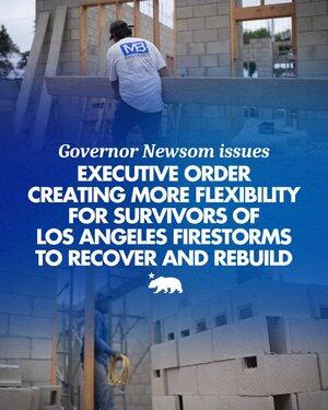 我剛剛發布了一項行政命令,以進一步加快洛杉磯的火災恢復工作,具體措施包括: ✅進一步減少繁文縟節,幫助洛杉磯居民重建 ✅確保火災倖存者保留保險,以安裝屋頂太陽能系統 ✅簡化下水道系統升級 ✅擴大對倖存者的住房優先權