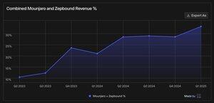 艾利藥廠 ($LLY) 成為第一家市值突破 1 兆美元的醫療保健公司。 減重藥物現在佔總收入的 >25%,且年增長率超過 100%。