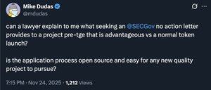 2/ NAL 是美國證券交易委員會(SEC)員工的書面聲明,表示他們不會對某公司針對特定提議活動(在這種情況下是 TGE 或空投)建議採取執法行動。這不是法律或法規,而是基於他們所呈現的狹窄事實的員工級別指導。