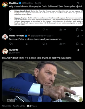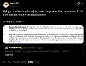 因為顯然對這些實體來說,執行官的舒適、薪酬和奢華旅行比為股東購買更多比特幣更重要,儘管後者是他們在推特上談論的全部內容。