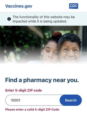 CDC 已經關閉了其疫苗搜尋工具。 當您輸入有效的郵遞區號時,該網站現在會顯示錯誤。 他們還刪除了「疫苗可以幫助您保持健康」的文字,並添加了一個橫幅,表示該網站正在更新。