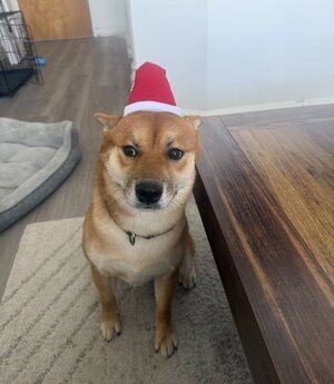 我不認為我的狗喜歡他的聖誕老人帽