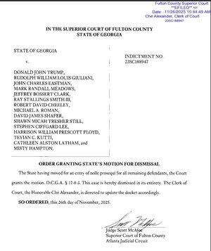 特朗普案件:喬治亞州刑事案件正式結束,撤訴已獲批准。特朗普判決書 新的吉斯蘭·麥克斯韋爾項目即將推出