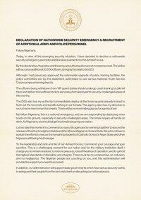 親愛的尼日利亞同胞,這是一場國家緊急狀態,我們正在通過在特別是安全挑戰區域部署更多部隊來回應。這個時刻需要所有人共同努力。作為尼日利亞人,我們都應該參與保護我們的國家。