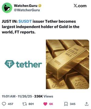 Tether 持有的黃金比其他任何人都多,告訴中央銀行讓開,我們來處理這個。