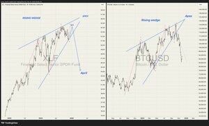 銀行🏦 vs. Bitcoin🪙 *上升楔形更新。 銀行落後於 Bitcoin。 兩者的模式彼此相似。 可怕嗎? 你來決定🫵