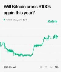最新消息:根據Kalshi上的交易者,$BTC再次突破$100K的機率上升至60%。