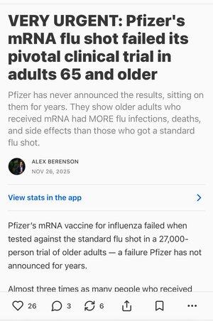 新的 Substack,關於輝瑞缺失(和失敗)的 mRNA 流感疫苗試驗
