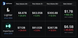 而 Lighter 的支持者們 - 如果你們想,請列出更多指標,顯示 Lighter 明顯領先於 Hyperliquid 的地方。