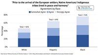近80%的黑人美國人和約三分之二的西班牙裔美國人錯誤地認為「在歐洲定居者到來之前,原住民/土著部落生活在和平與和諧中。」