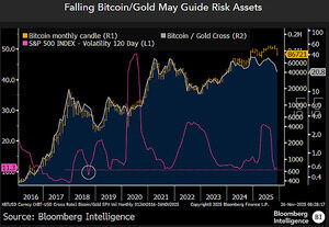 比特幣/黃金比率、波動性指向通縮 - 股市波動性下降和價格上漲通常促進了比特幣的活力,但這種情況可能正在減弱。我的圖表顯示,標準普爾500指數的120天波動性在10月底達到自2018年以來的最低點後,可能正在觸底。 完整報告請參見彭博社: {BI COMD} #gold #bitcoin #stockmarket @BBGIntelligence