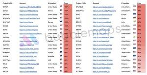 根據Bubblemaps的資料,基於X(Twitter)對38個之前高知名度代幣的地理位置數據,這些代幣有顯著的錢包聚集,超過50%的項目團隊將美國列為他們的所在地,其次是歐洲和印度。價格表現非常嚴重:最低回撤為78%,而超過一半的代幣下跌幅度達99%,例如MELANIA和CR7 Fake。