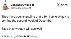 「保存這條推文。它會隨著時間增值。」 如果它隨著時間增值,那就意味著在接下來的幾週內將會有數千名美國人被謀殺。 為什麼Candace會對此感到高興? 為什麼她不把這個信息告訴當局?
