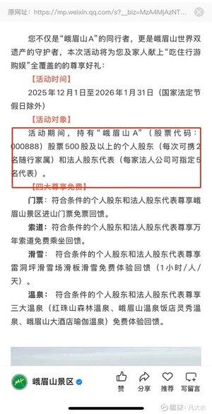 峨眉山股票,持股500可以免景區和索道門票,還送滑雪和溫泉。 壞了,幣圈的 Staking 給他們學會了。