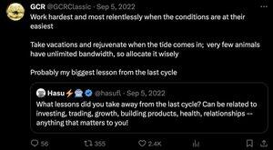 這可能是你們在這個市場中遭受損失時最需要聽到的最佳建議: 旅行,享受生活,即使在艱難的時期,也要在市場轉好時不斷鎖定收益。 機會成本不僅僅是財務上的,還包括你錯過的生活經歷。