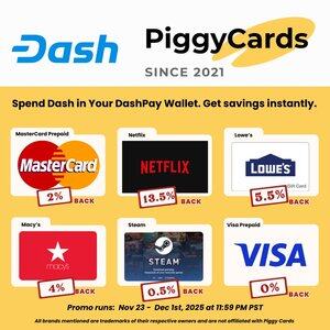 所有提到的品牌均為其各自所有者的商標,並且與 Piggy Cards @Dashpay 無關