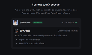 在 Infinex 獲得了 "CT Mafia" 身份,但他們想要 10,000 美元來解鎖我的箱子。 從來沒有同時感覺如此富有又窮困 😭 求救啊。