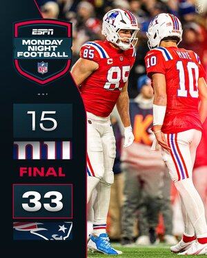 最終:@Patriots 在 MNF 中擊敗巨人,戰績提升至 11-2。